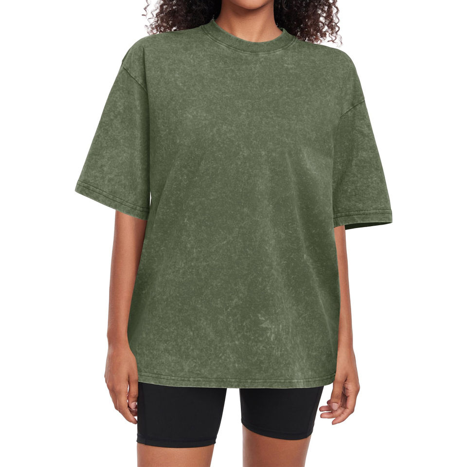 T-shirt personnalisé délavé à l'acide 100% coton, coupe oversize, grande taille, avec motif graphique, pour femme, impression logo, style vintage