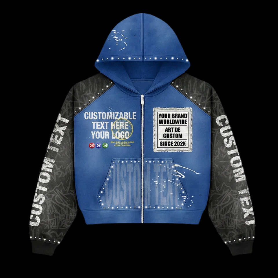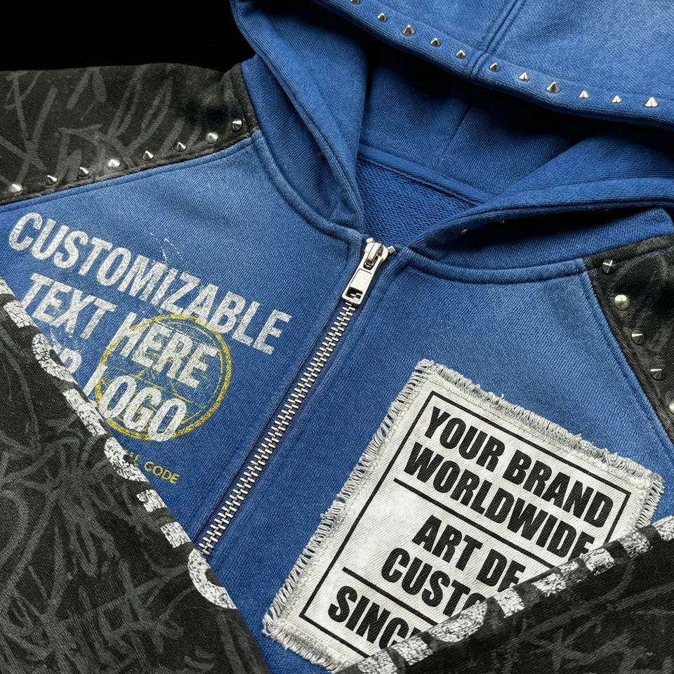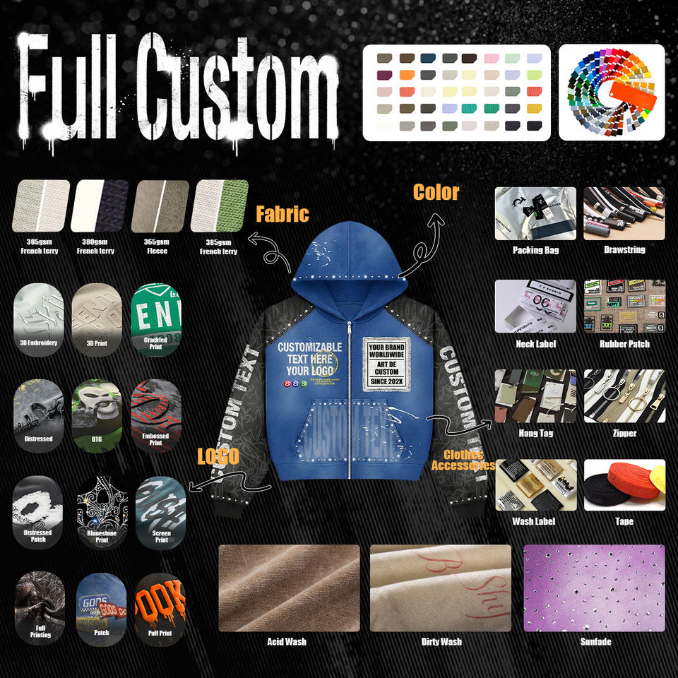 Sweat-shirt à capuche oversize pour homme, coupe carrée, personnalisé, délavé à l'acide, avec patchwork, broderie de strass et imprimé graphique, style streetwear printemps