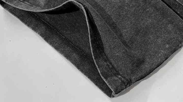 T-shirt à manches longues thermique gaufré double couche en coton lavé à l'acide personnalisé T-shirt en jersey à col rond imprimé et motif de lettres