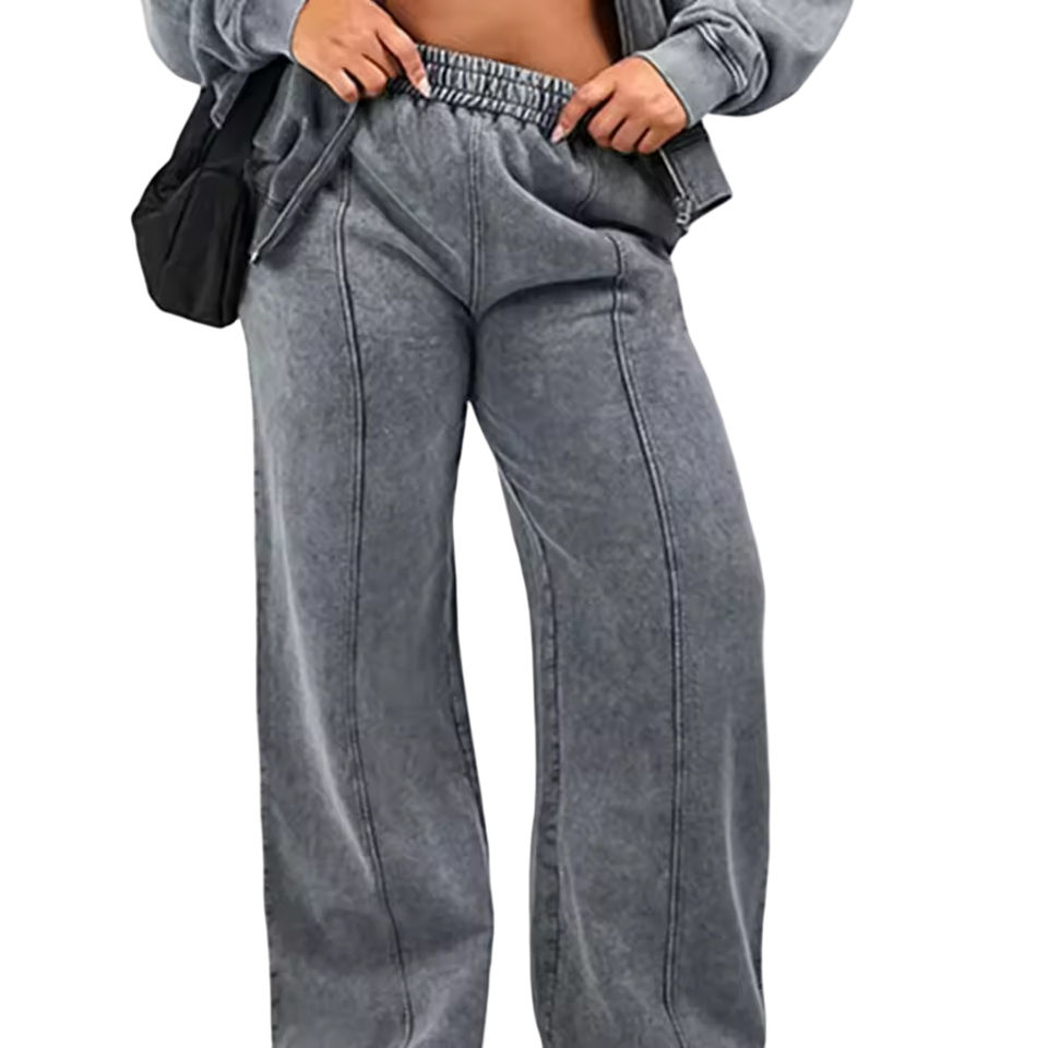 Survêtement personnalisé à fermeture éclair lavée à l'acide et pantalon évasé NewStyle 100% coton polaire lourde pour les femmes 2026