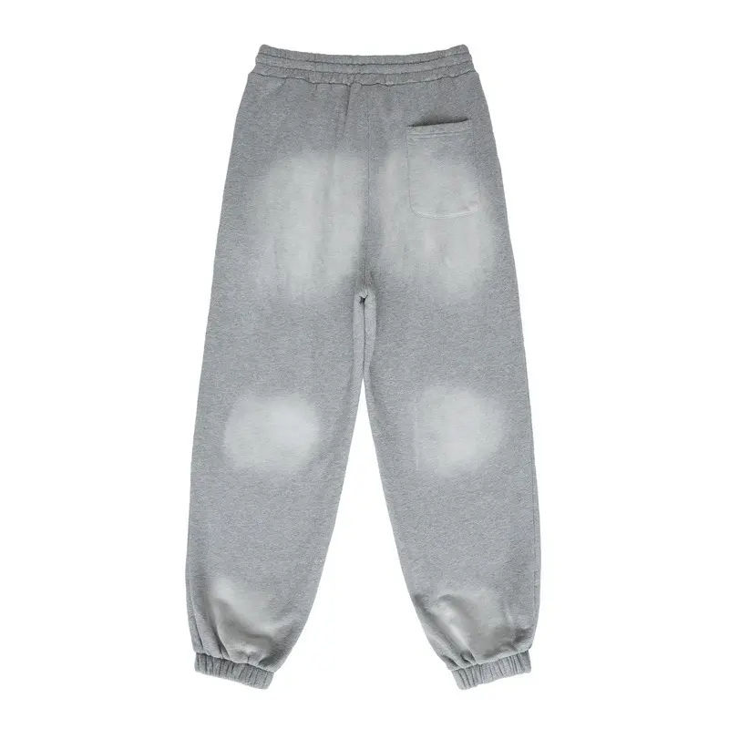 Pantalon de survêtement vintage lourd lavé à l'acide personnalisé 100% coton Style décontracté avec pour impression bouffante et décoration en dentelle