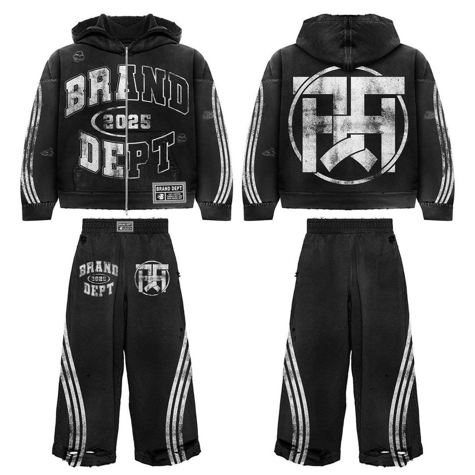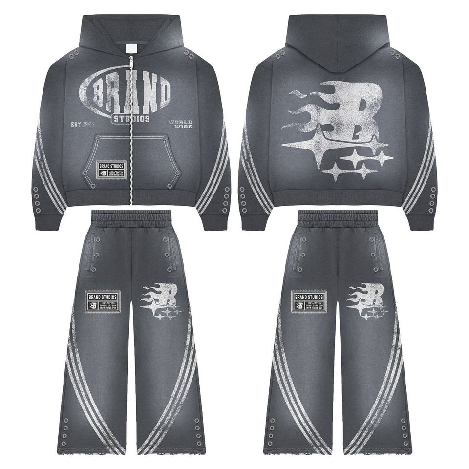 Streetwear survêtement personnalisé vintage délavé à l'acide pour hommes, sweat à capuche respirant à fermeture éclair et pantalon de survêtement évasé avec sérigraphie