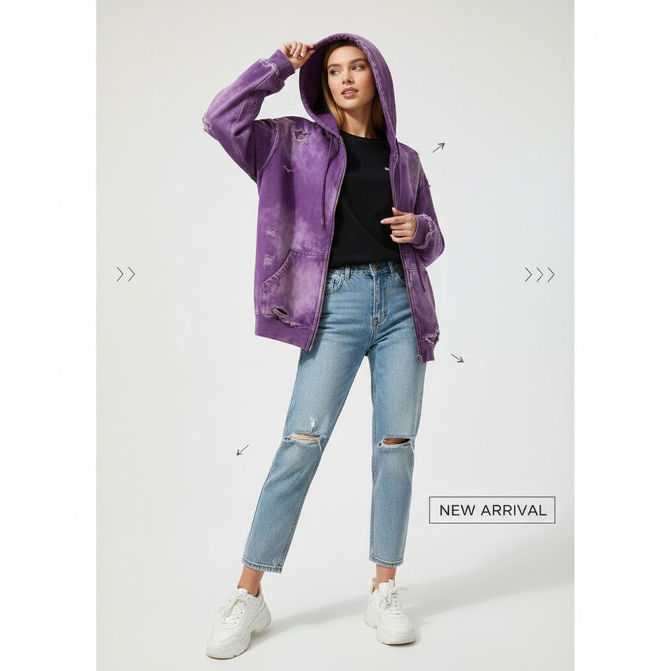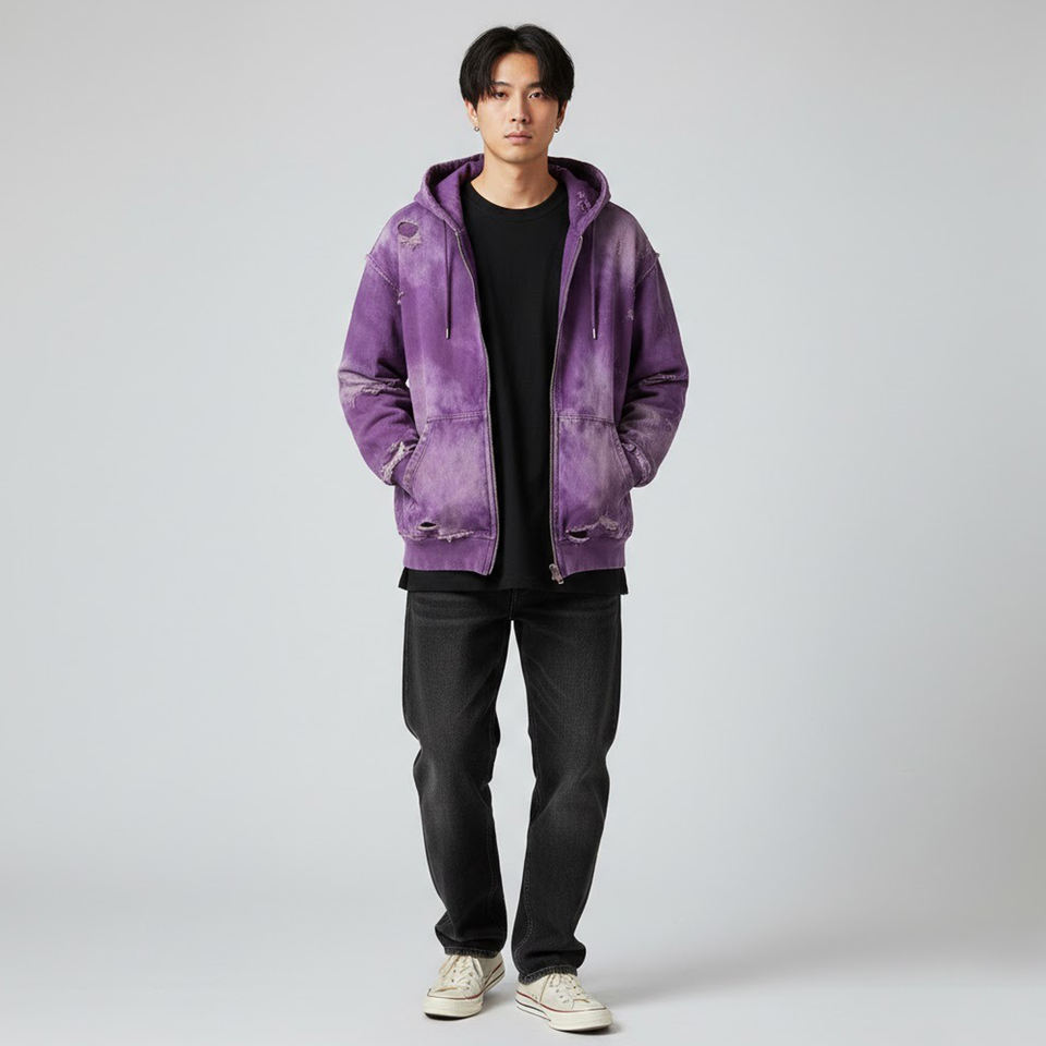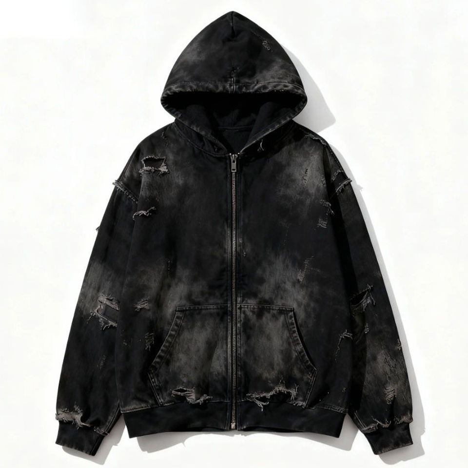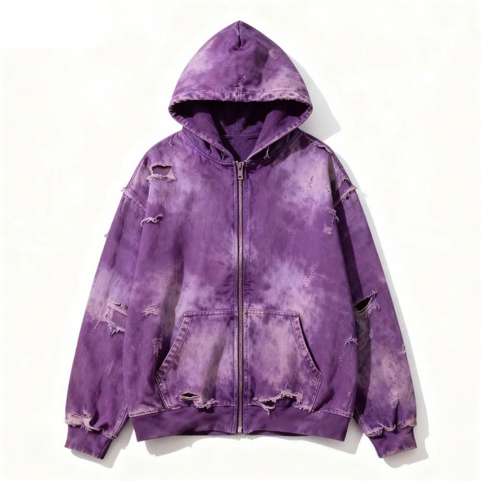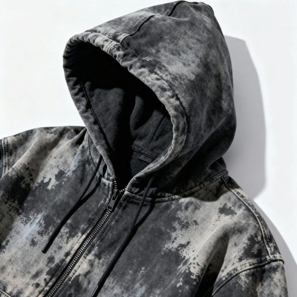 Sweat à capuche surdimensionné personnalisé délavé à l'acide avec fermeture éclair intégrale, tendance, 100 % coton molletonné, vente en gros, pour un look décontracté ou streetwear, unisexe