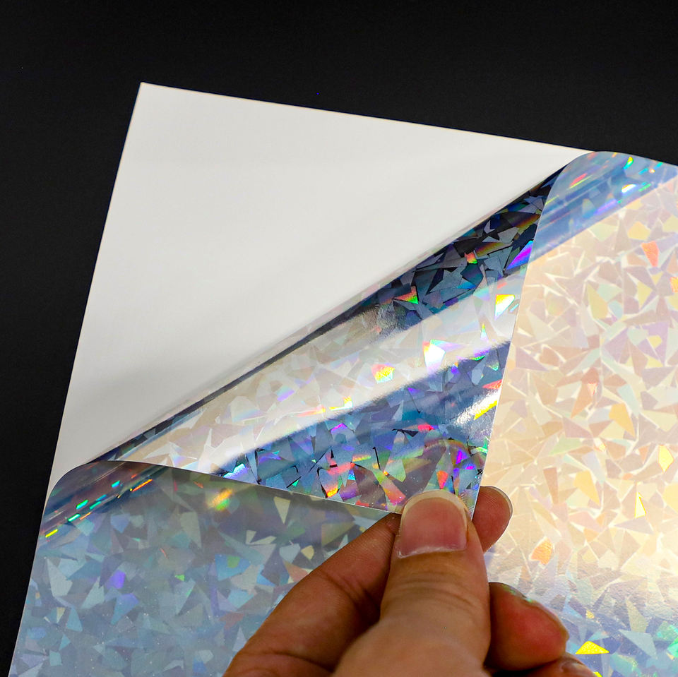 Autocollants holographiques adhésifs en acrylique personnalisés, simple face, imperméables, imprimables par jet d'encre, feuille de masquage PE A4 pour imprimante jet d'encre