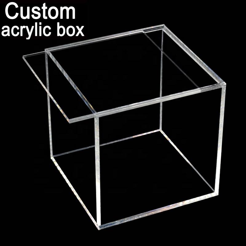 Boîte en acrylique personnalisée, boîte de présentation en acrylique transparente, boîte à 5 côtés avec couvercle/couvercle coulissant ou base, boîte en plexiglas acrylique pour aliments, roses