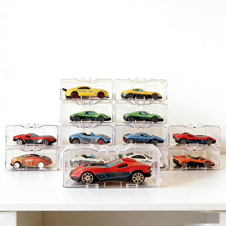 Boîte de rangement en acrylique personnalisée à 24 compartiments, anti-poussière, transparente, pour modèles de voitures, avec logo couleur personnalisé pour poupées de mode et jouets