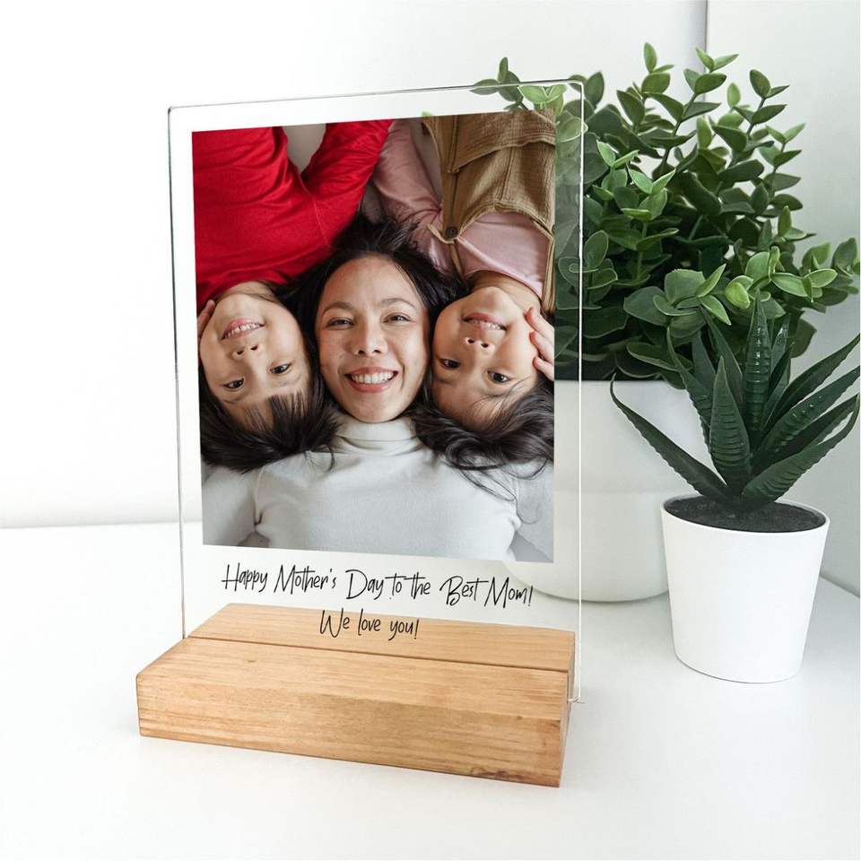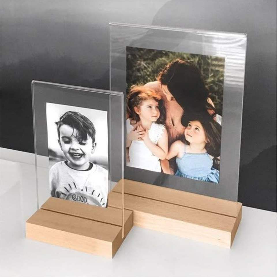 Cadre photo personnalisé en acrylique, cadre photo en verre personnalisé avec base en bois, décoration de la maison pour anniversaire, mariage, cadre photo en acrylique
