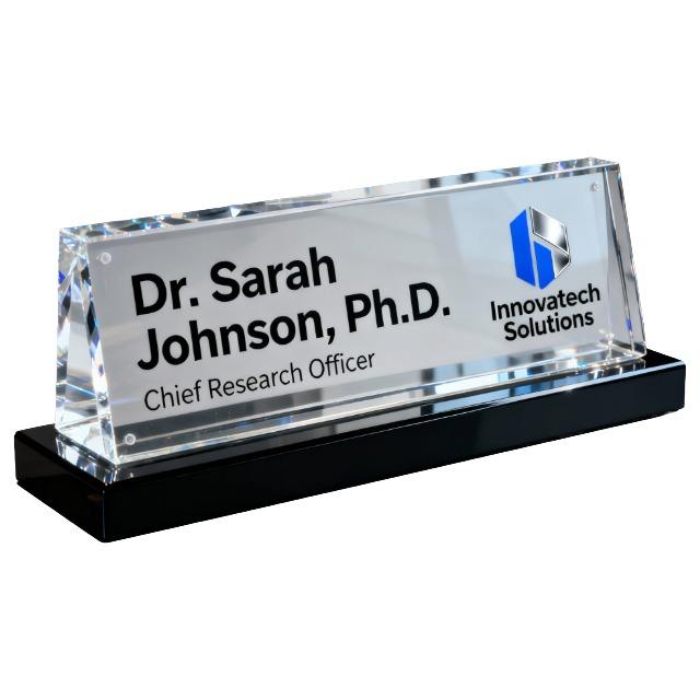 Support de présentation de nom en acrylique personnalisé, résistant à l'eau et aux UV, impression couleur intégrale, support transparent pour la marque de vente au détail, le marketing