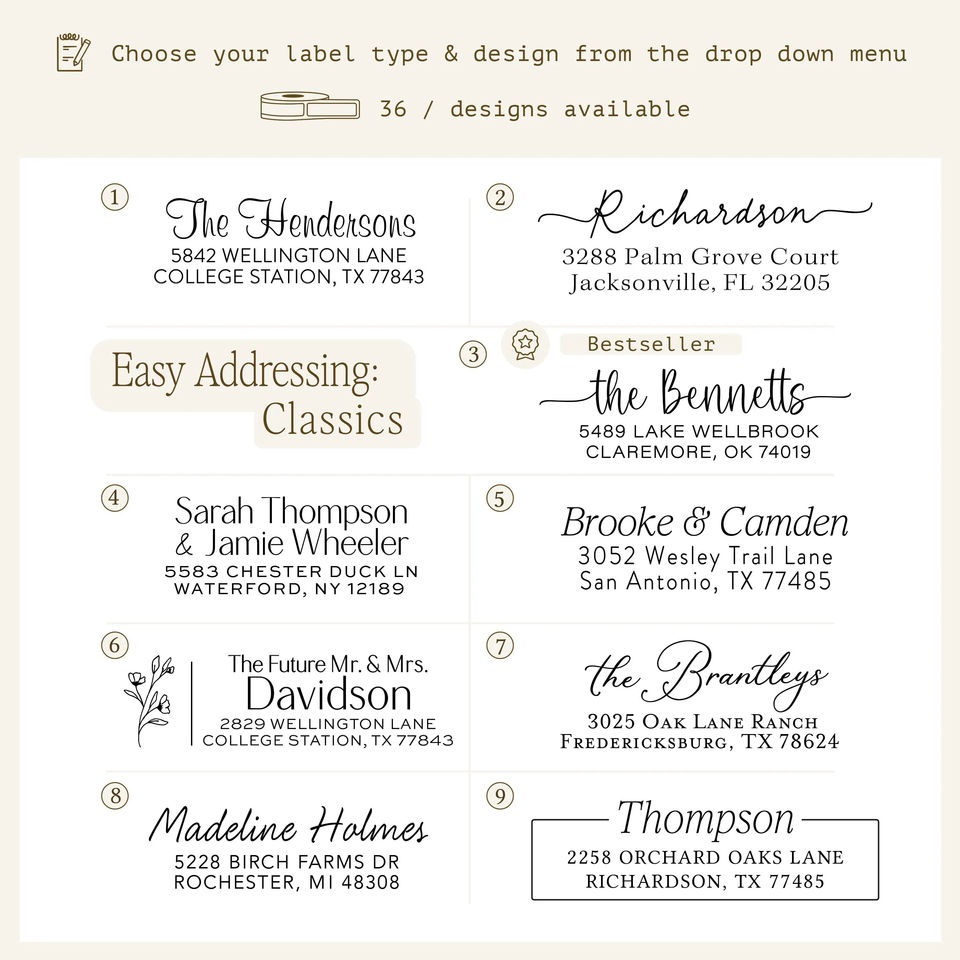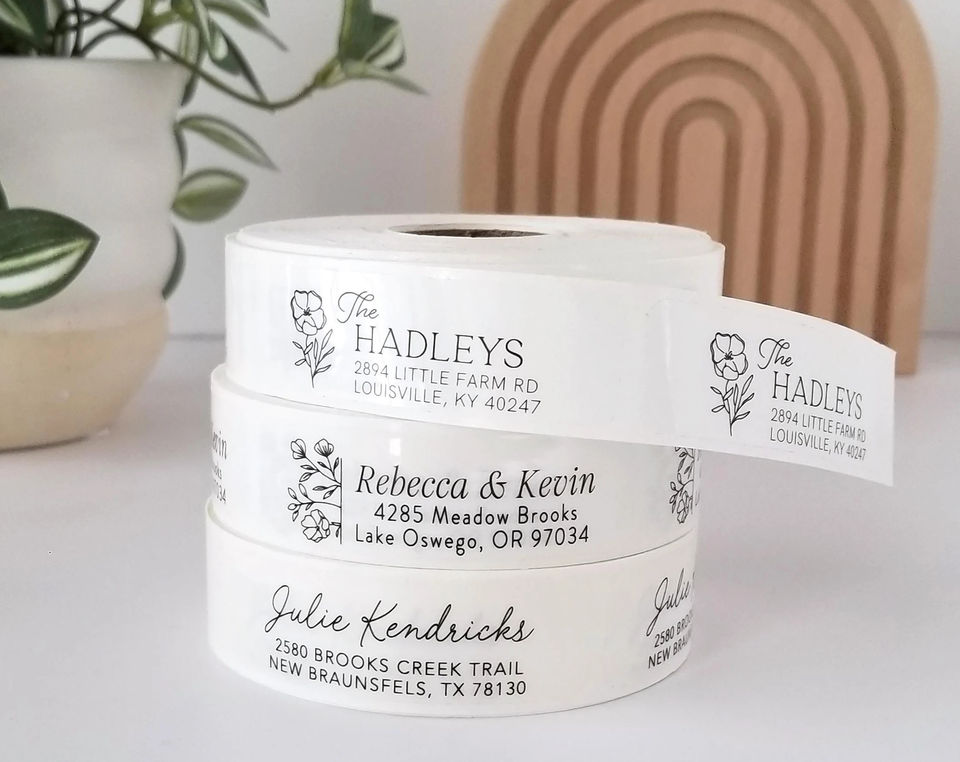 Étiquettes d'adresse personnalisées sur rouleaux, autocollants d'adresse de retour de mariage personnalisés, étiquettes blanches transparentes pour enveloppes d'envoi