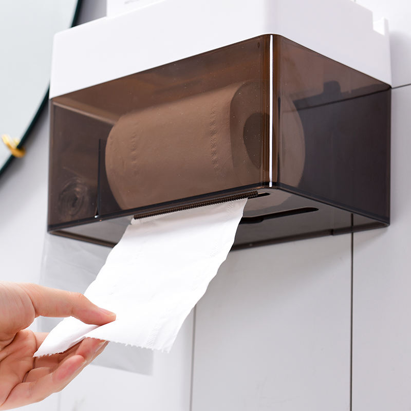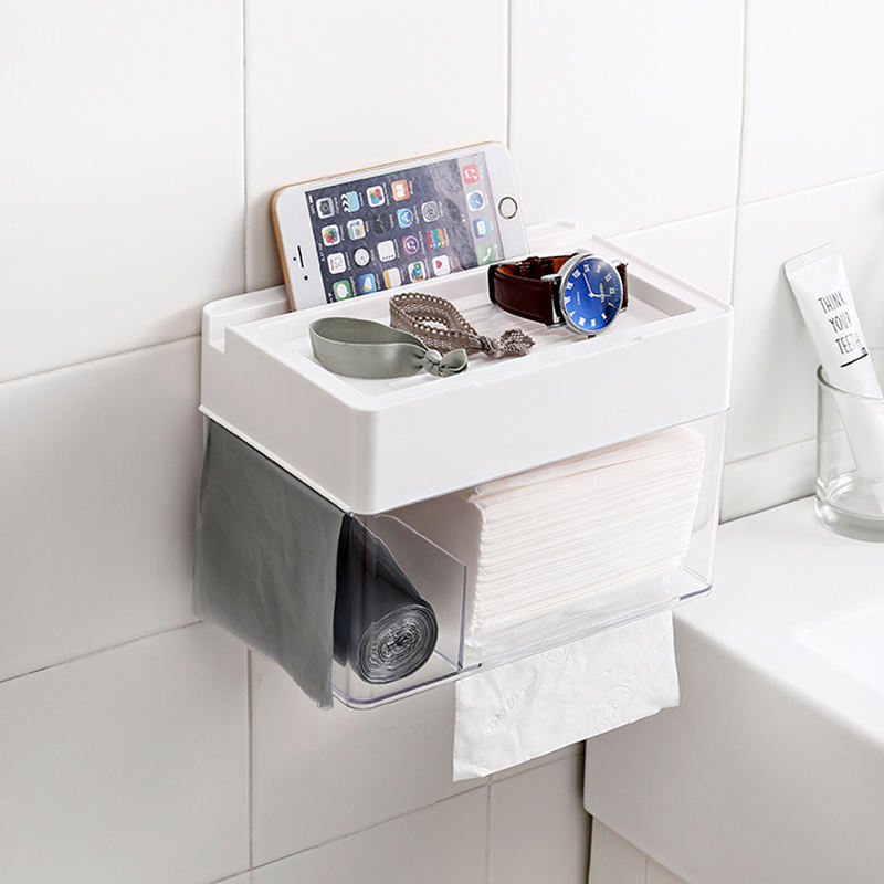 Boîte de rangement murale en papier de soie en plastique dur adhésif personnalisé Organisateur Acrylique Couvercle de salle de bain Carton conception sans perçage