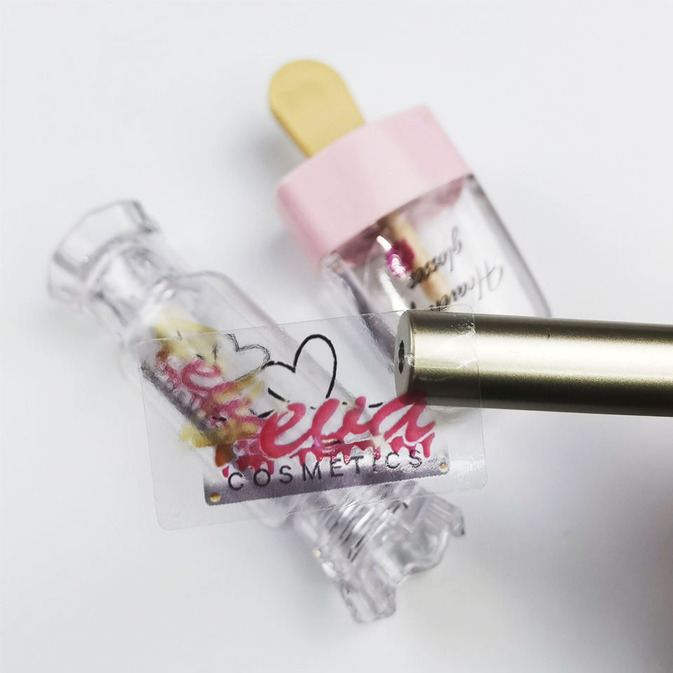 Autocollants adhésifs personnalisés en vinyle pour Tube de brillant à lèvres, impression de cosmétiques, brillant, teinte pour lèvres, étiquette privée, Transparent pour brillant à lèvres