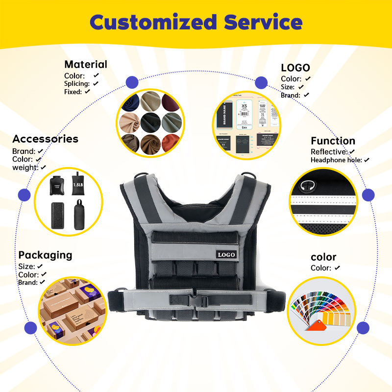 Gilet lesté personnalisable 10KG-20KG en polyester imperméable et respirant pour l'entraînement de force, la course à pied et le développement musculaire
