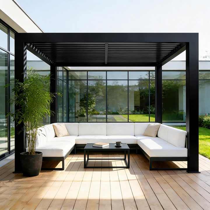 Pergola bioclimatique en aluminium électrique, système réglable personnalisé, jardin, piscine, villa, imperméable, extérieur, à lames orientables