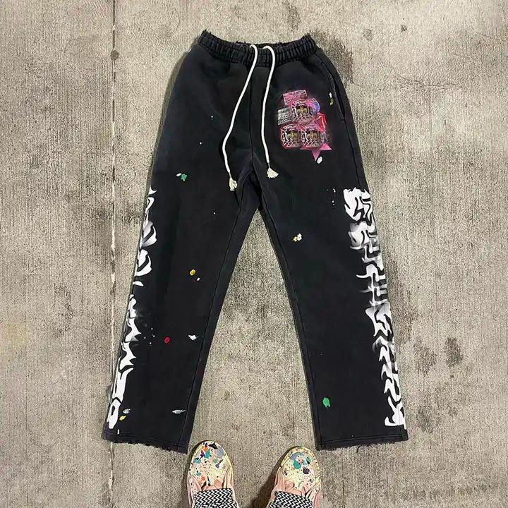 Pantalon de Jogging Empilé pour Adulte Personnalisé Impression 100% Coton Polaire Sérigraphie Pantalon de Survêtement Évasé 2024