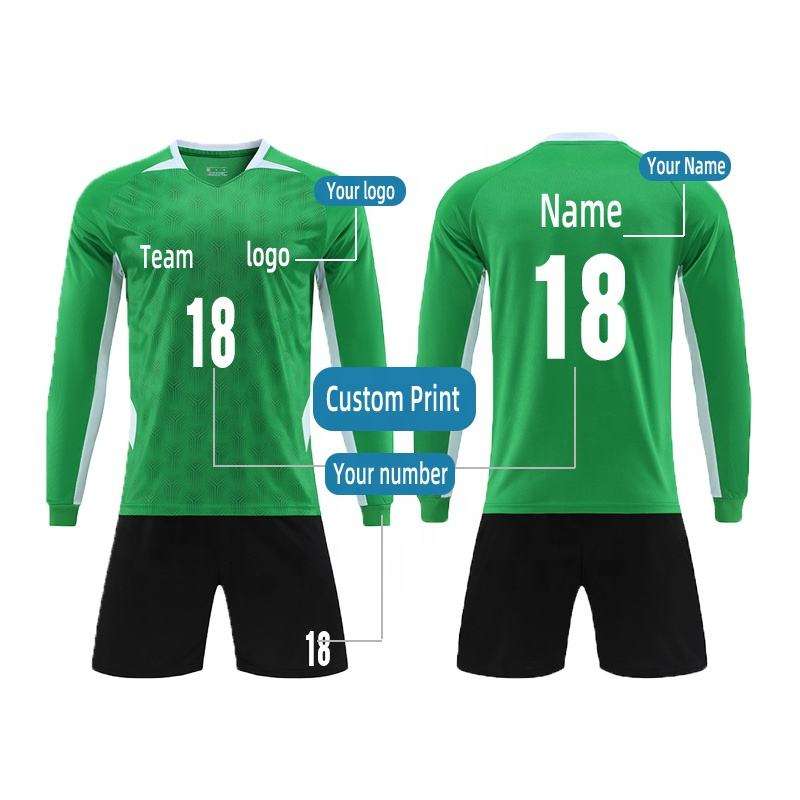 Ensemble d'uniformes de football personnalisés pour adultes, 100% polyester, manches longues, sublimés, col rond, maillot de football, short de football avec cordon de serrage