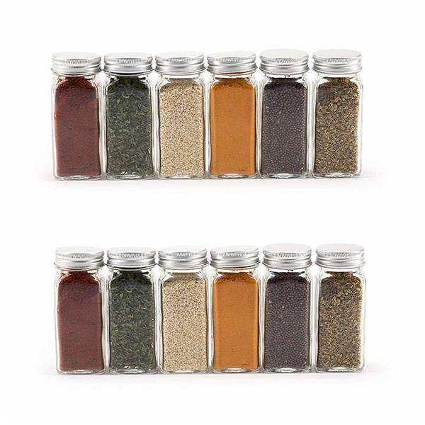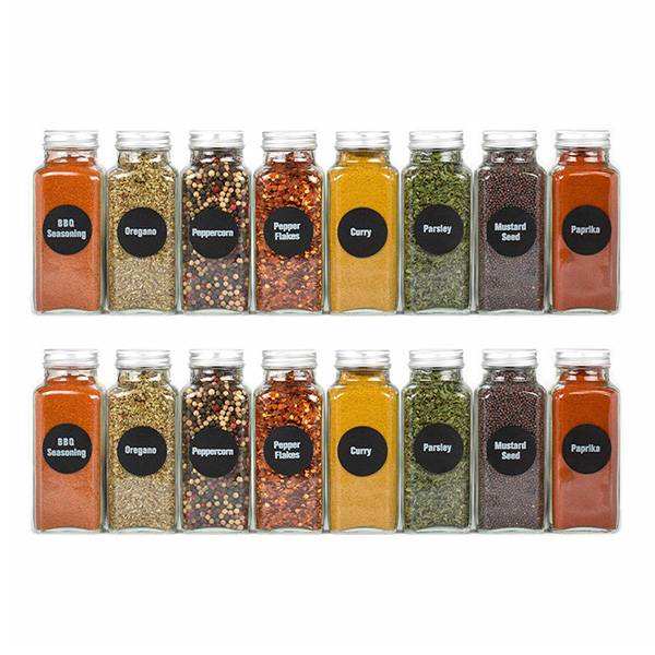 Étiquettes transparentes Pour tableau noir, bouteilles à épices carrées de 4oz, pots à épices en verre avec couvercles en métal argenté, tamis
