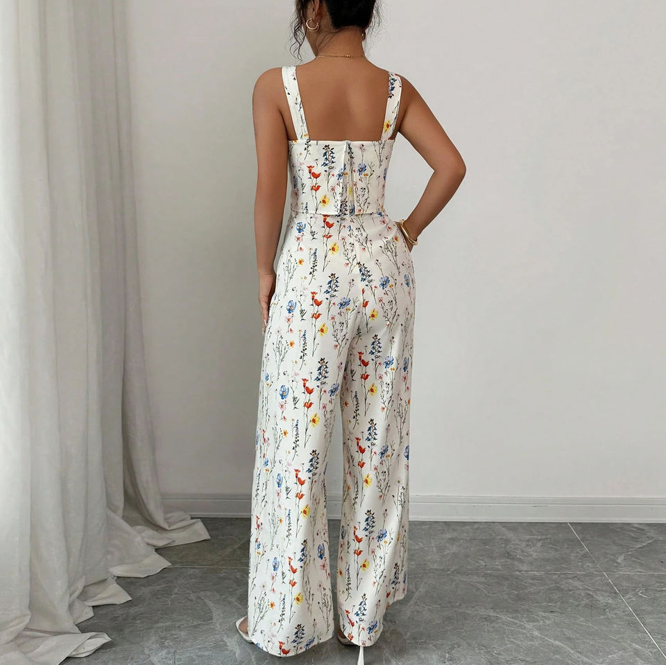 Combinaison à imprimé floral personnalisé pour femmes, pantalon large décontracté pour femmes