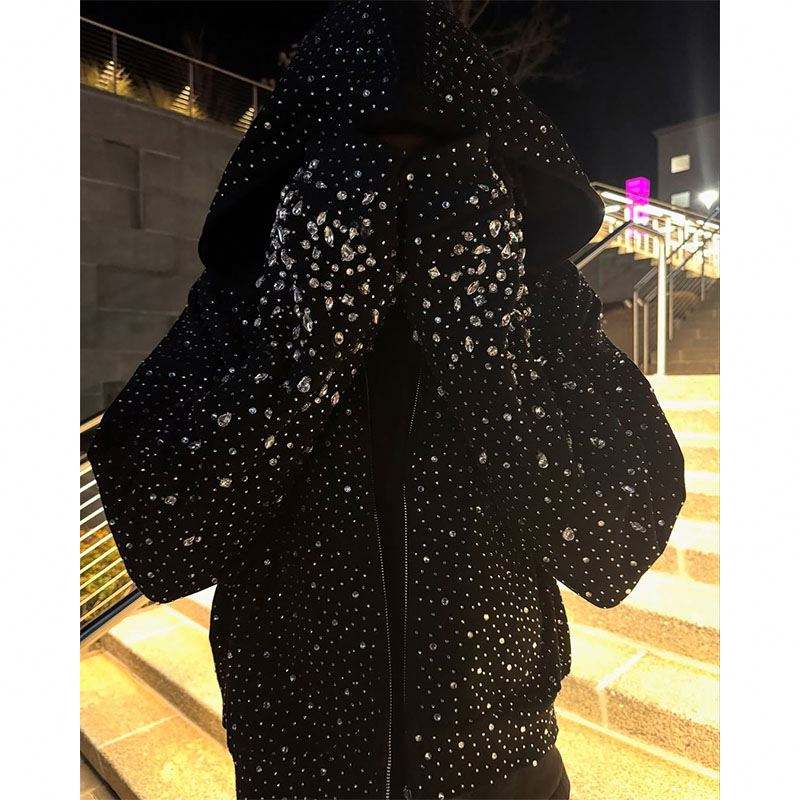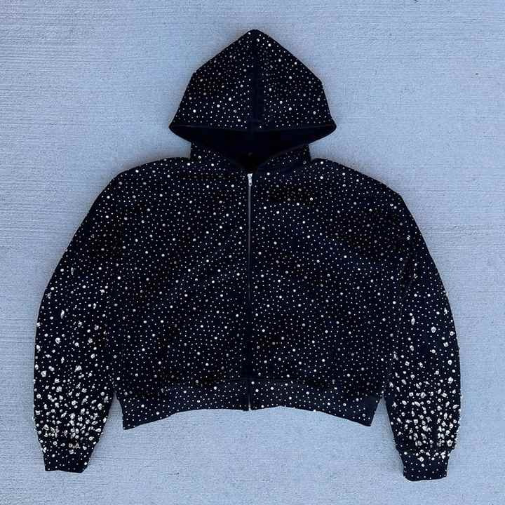 Sweat à capuche personnalisé imprimé intégral avec strass et diamants, zippé, surdimensionné, scintillant, 100 % coton, décontracté pour l'hiver