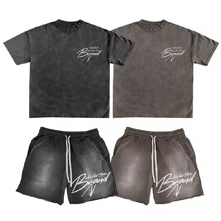 T-shirt court à imprimé graphique personnalisé sur toute la surface, style streetwear, coupe ample, pour hommes, et ensemble deux pièces, ensemble court pour hommes