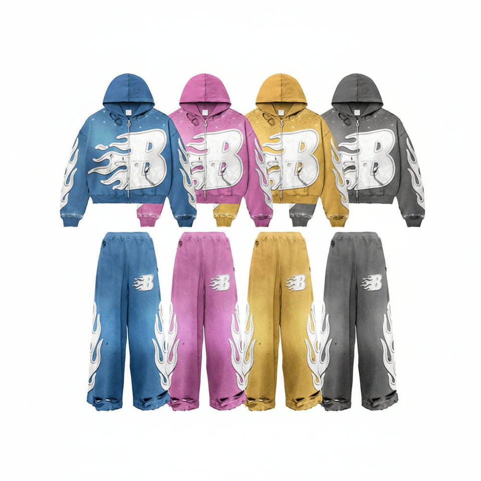 Ensemble de survêtement décontracté 2 pièces personnalisé pour l'hiver, en molleton de coton épais, effet délavé soleil, style empilé