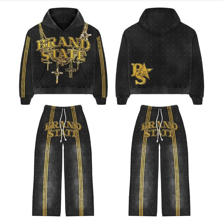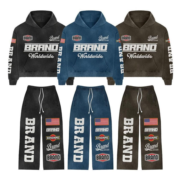 Personnalisé Allover sérigraphié survêtement Baggy survêtement hommes pantalons de survêtement évasés deux pièces ensembles est 500 GSM