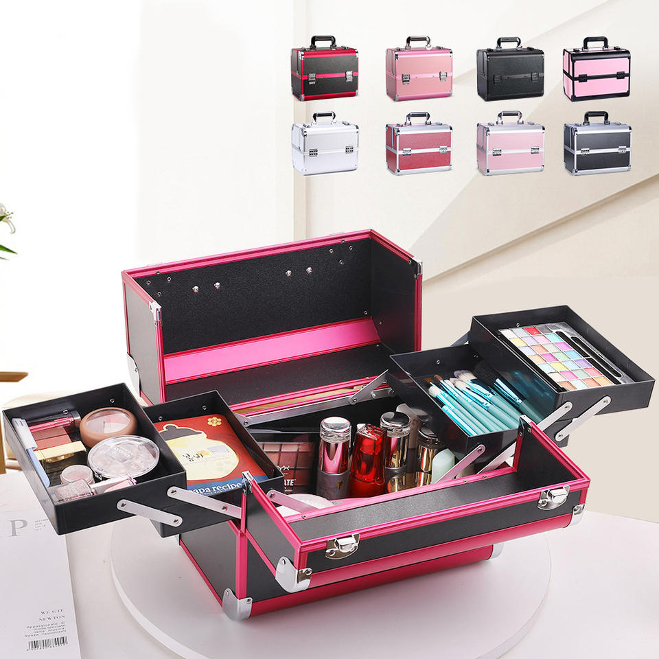 Boîte à cosmétiques professionnelle en alliage d'aluminium sur mesure, grande taille, pour le rangement à domicile, couleur unie, métal.