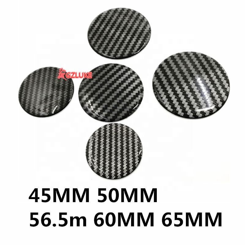 Autocollant d'emblème de volant de voiture en aluminium personnalisé LOGO 45 mm 50 mm 56 mm 60 mm 65 mm Capuchon central de roue Motif fibre de carbone