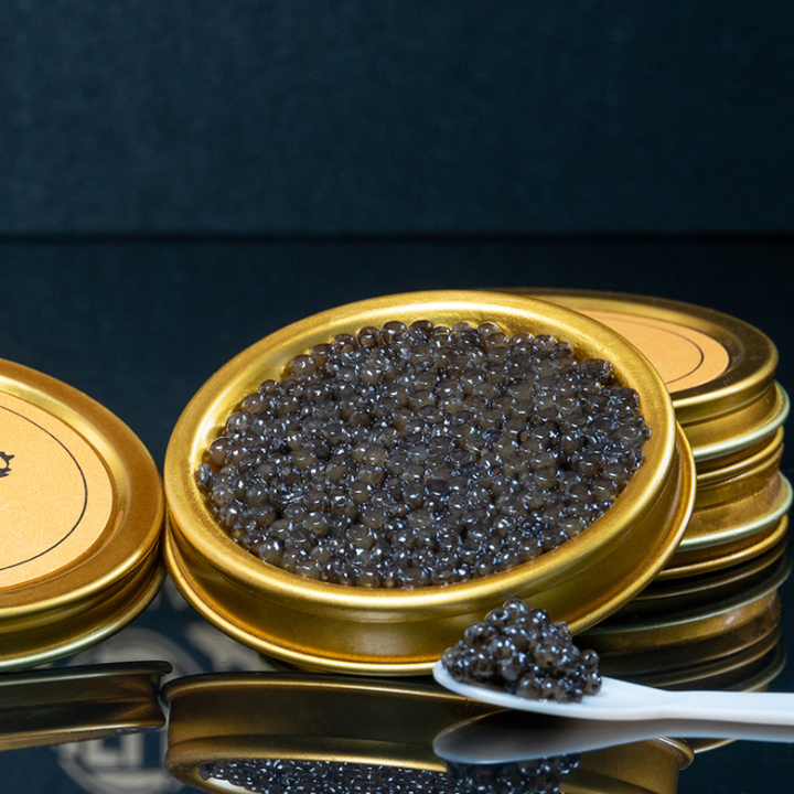 Boîtes de caviar rondes en métal avec couvercle transparent en aluminium personnalisé, boîtes de caviar vides en étain doré, emballage avec vis supérieure, boîtes de caviar