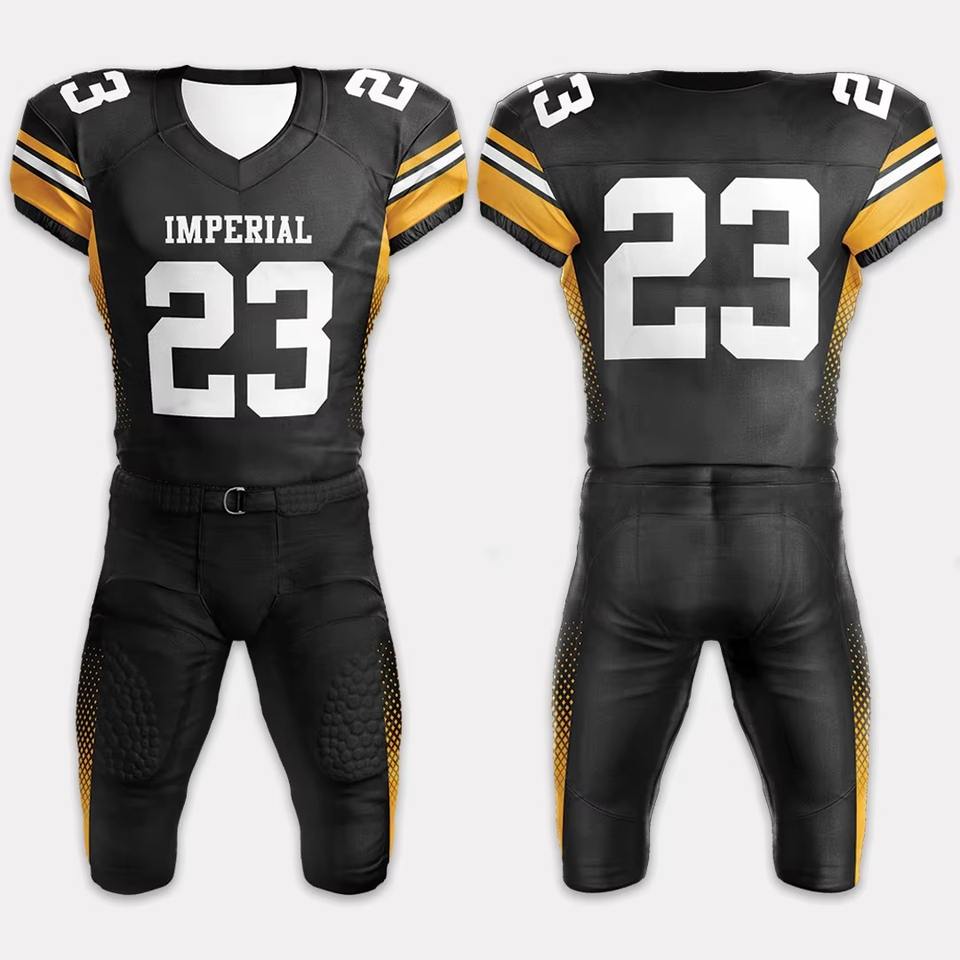 Ensemble de maillot et pantalon de football américain personnalisé, imprimé par sublimation, respirant, unisexe, confortable, durable, pour équipe, manches courtes