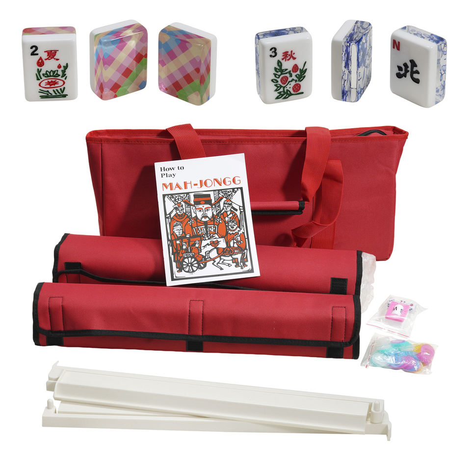 Jeu de Mahjong américain personnalisé, 166 tuiles en acrylique de qualité, 4 supports/poussoirs de couleur tout-en-un, tuiles de Mahjong avec sac de transport