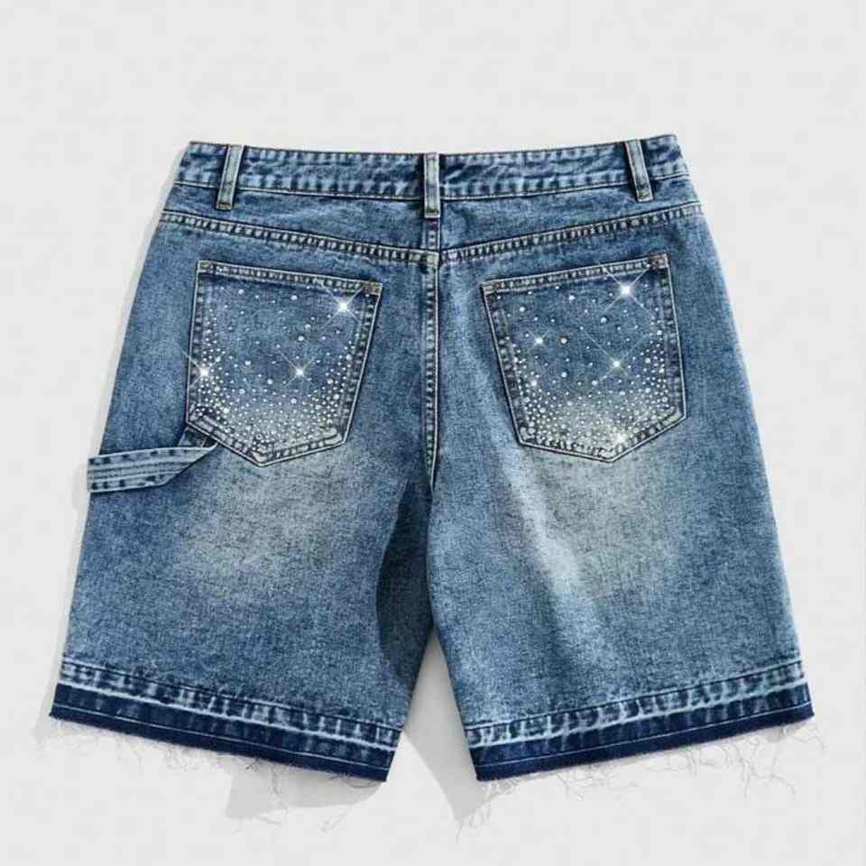 Shorts en jean vintage coupe ample taille mi-haute, design original américain personnalisé, été OEM/ODM