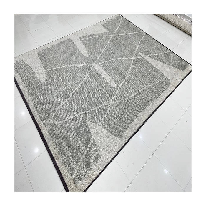 Style américain personnalisé avec bordure pour les concepteurs haut de gamme gris clair et foncé moderne sur mesure tapis de laine à haute peluche