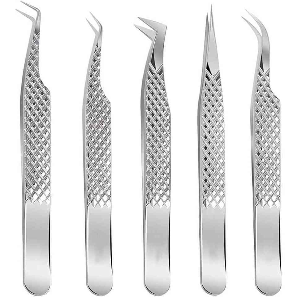 Pince à cils coudée personnalisée de 12 cm en acier inoxydable pour extensions de cils pointe pointue en fibre de volume russe individuel