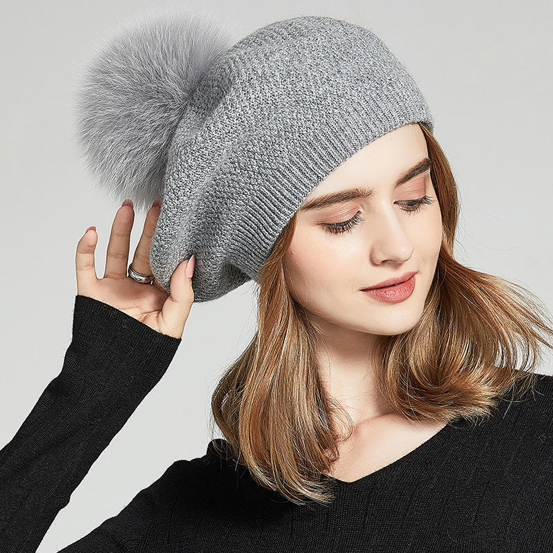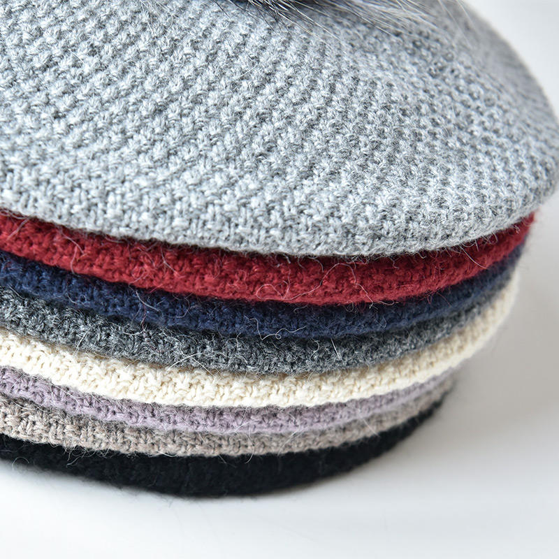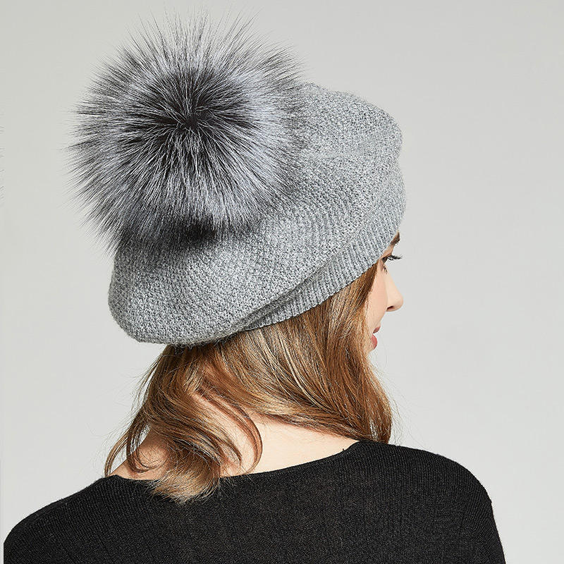 Type:Béret classique avec pompon en fourrure