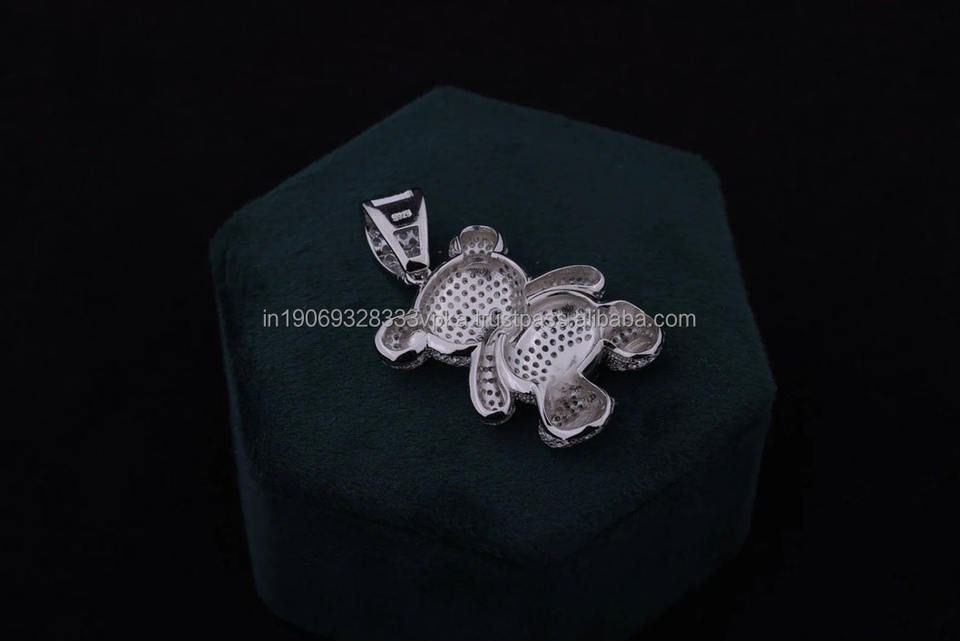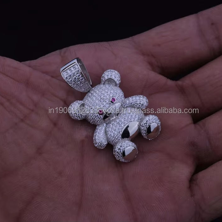 Pendentif unisexe personnalisé en forme de visage d'ours, plaqué rhodium, argent sterling 925, moissanite, style hip-hop, pour cadeaux d'anniversaire