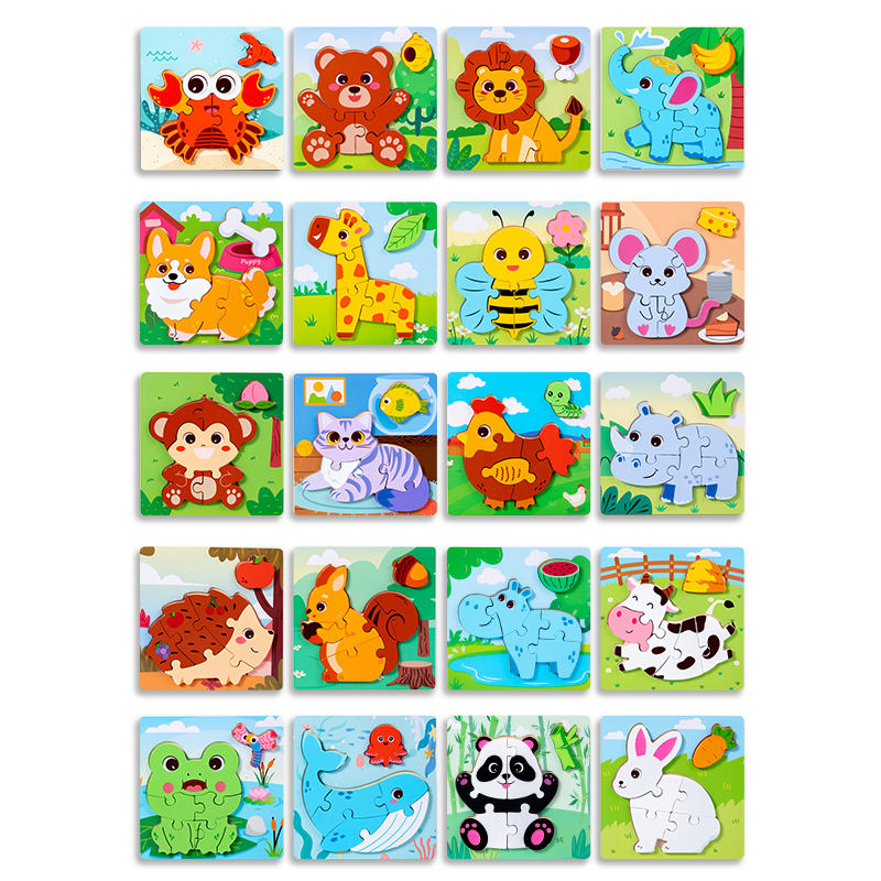 Puzzle en Bois Forme Animale Personnalisée Recherche de Nourriture Blocs DIY Jeux Éducatifs Apprentissage Puzzles 3D Jouets pour Enfants Garçons Filles