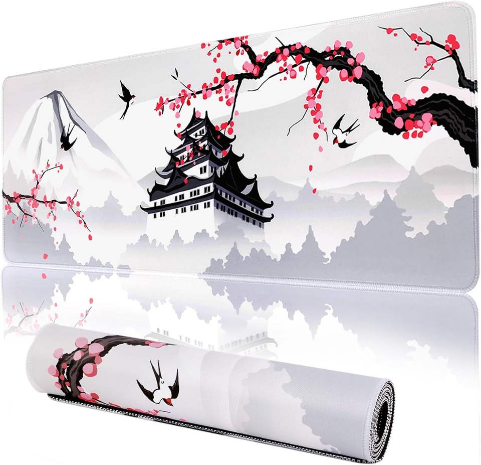 Tapis de souris de jeu personnalisé Anime Japonais Sakura, antidérapant, XXL, grand tapis de souris en caoutchouc, bords cousus pour le bureau