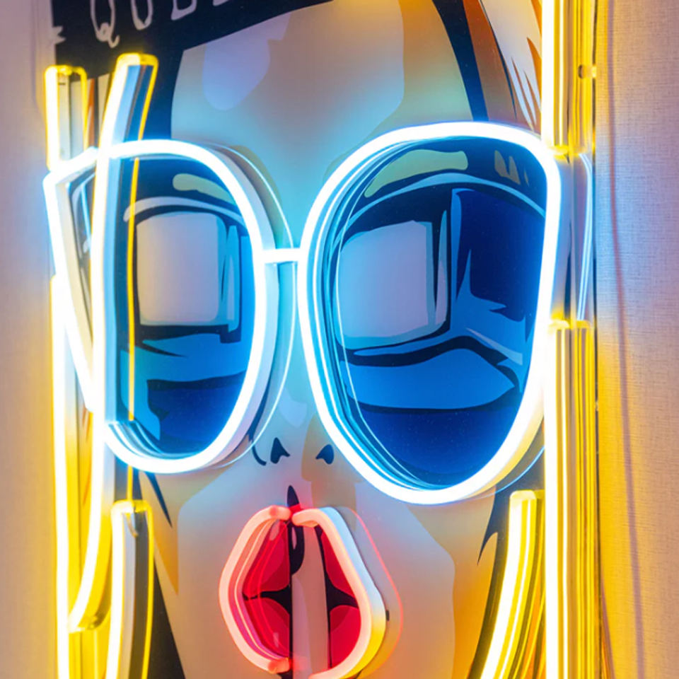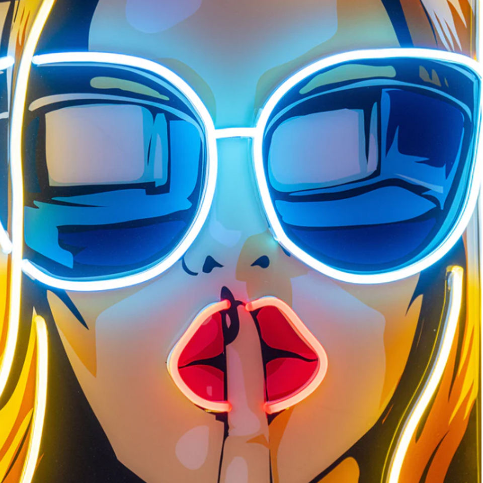cartoon girl in glasses neon sign