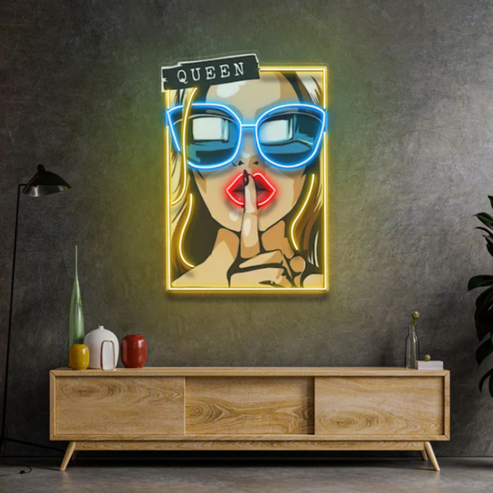 Numéro de Type:cartoon girl in glasses neon sign