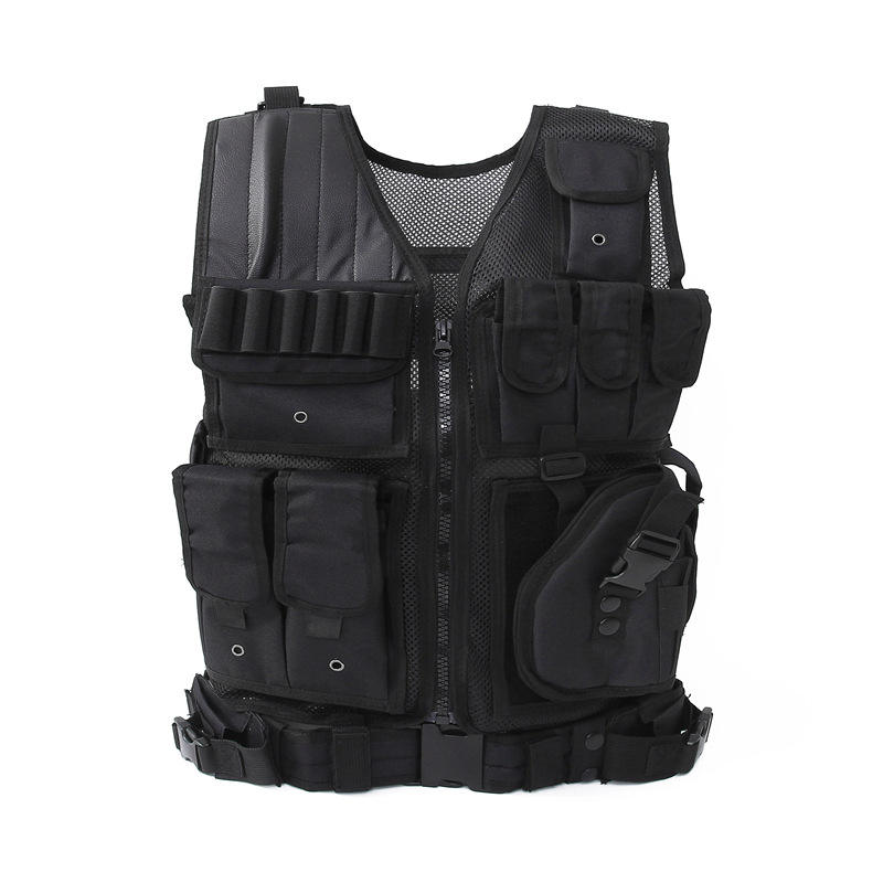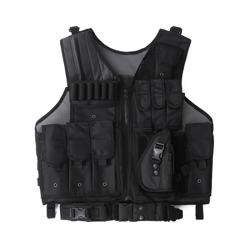 Gilet tactique anti-couteau personnalisé, imperméable, multifonctionnel, équipement de plein air, fermeture éclair, sac de poitrine en maille amphibie