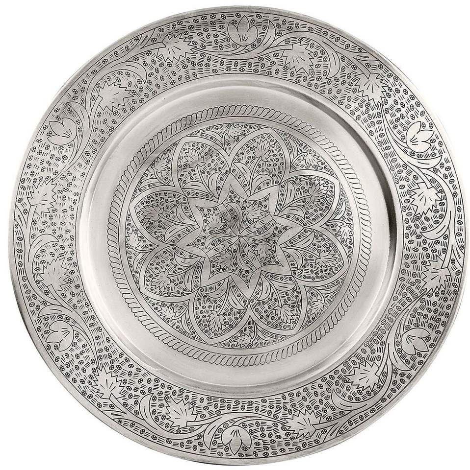 Plateau de service rond en acier inoxydable de style arabe, vaisselle antique personnalisée, assiette de présentation pour mariage et anniversaire