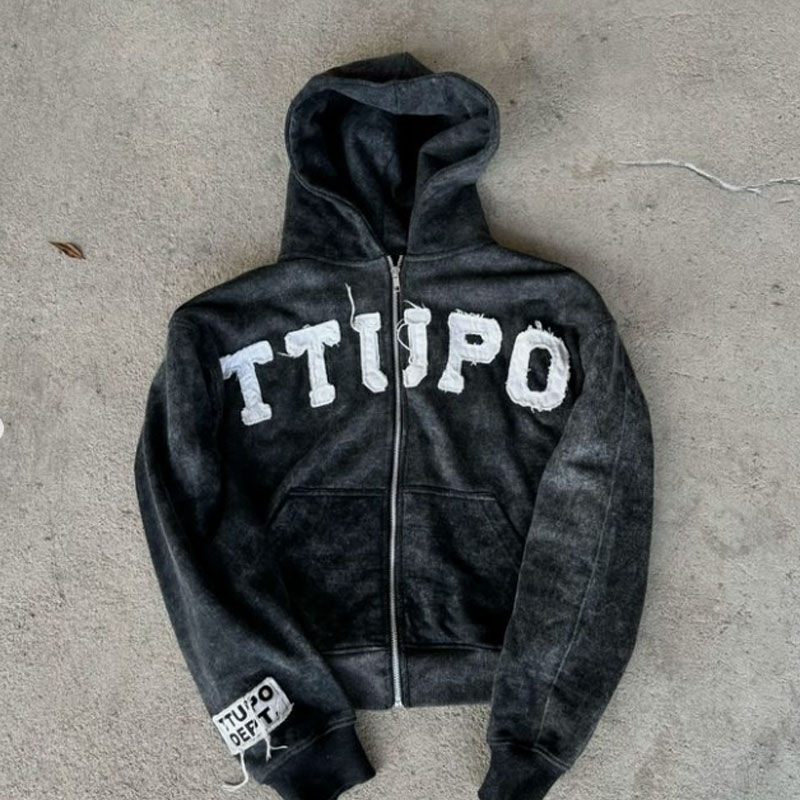 Sweat à capuche avec broderie applique personnalisée en détresse Sweats à capuche zippés en strass Lavage vintage à l'acide Sweat à capuche streetwear pour hommes
