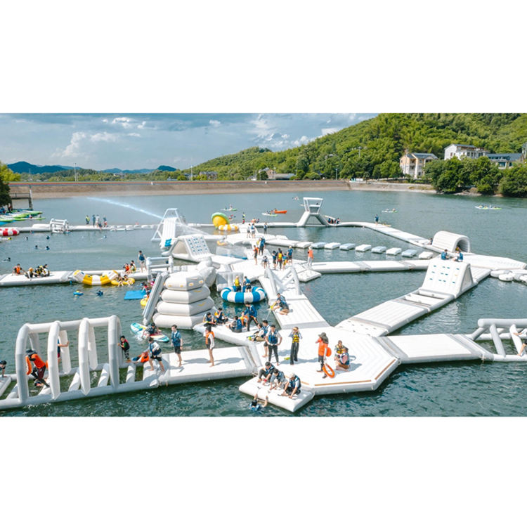 Obstacles aquatiques gonflables personnalisés, équipement d'amusement flottant, méga île flottante, aire de jeux gonflable pour le plaisir aquatique des adultes