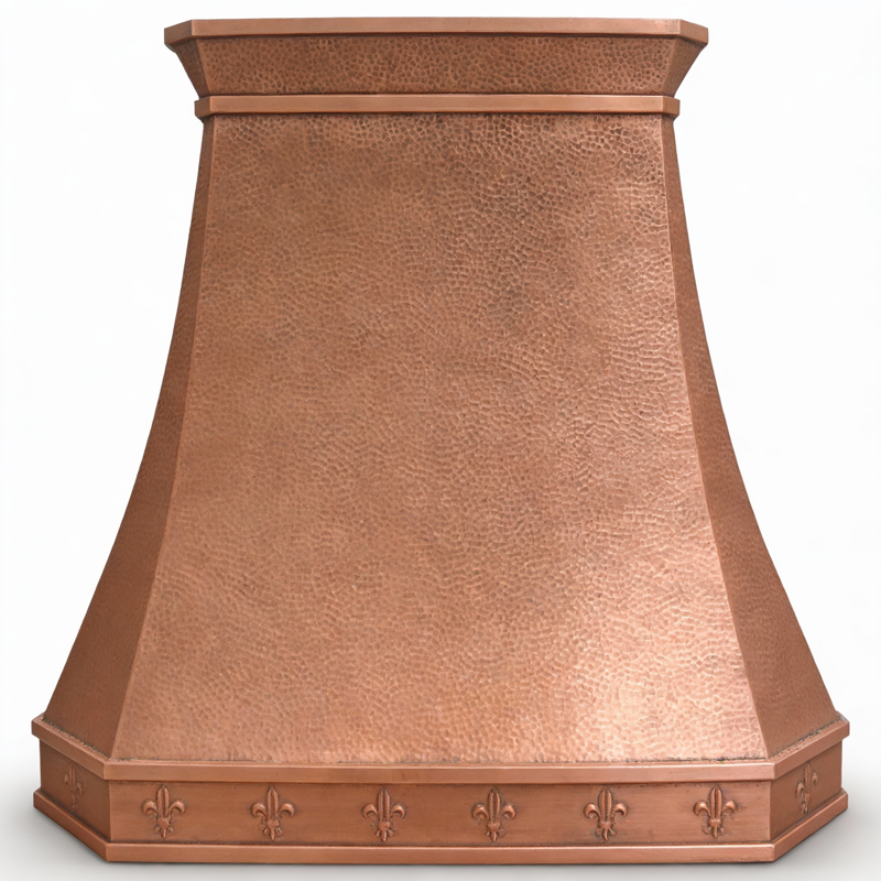 Hotte murale en cuivre de forme cloche, artisanale, pour les maisons de luxe