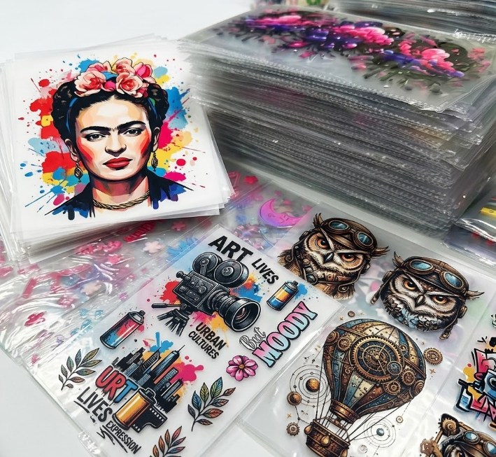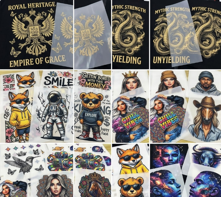 Autocollants de transfert thermique DTF artistiques personnalisés, film PET de qualité A pour t-shirts, impressions graphiques haute résolution