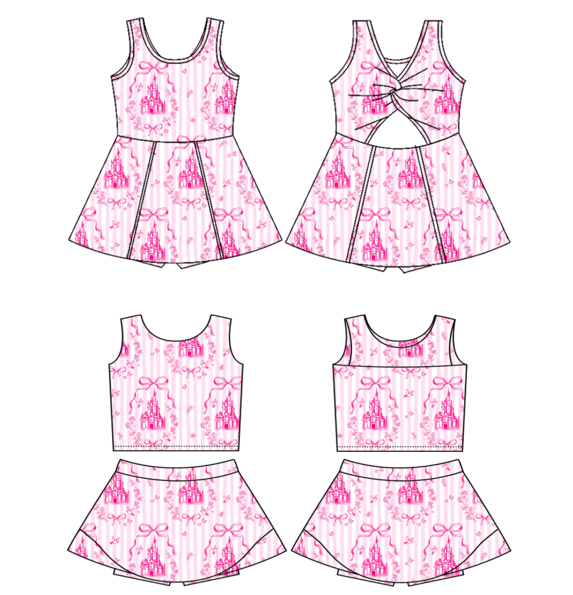 Nouvelles Robes de Yoga Respirantes pour Filles : Tenue Athlétique Florale d'Été Personnalisée avec Nœuds Château de Princesse Rose et Short Intégré