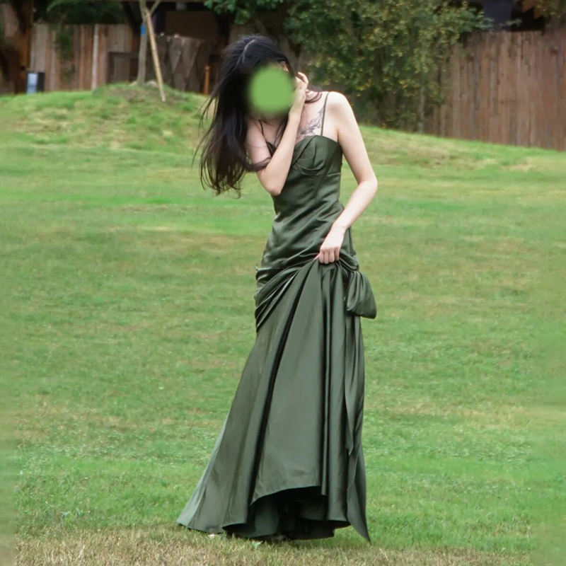 Custom Atonement Classic Dark Green Sexy Suspender Backless Dress Silk Party Women Lady Elegant Sexy Evening Dress