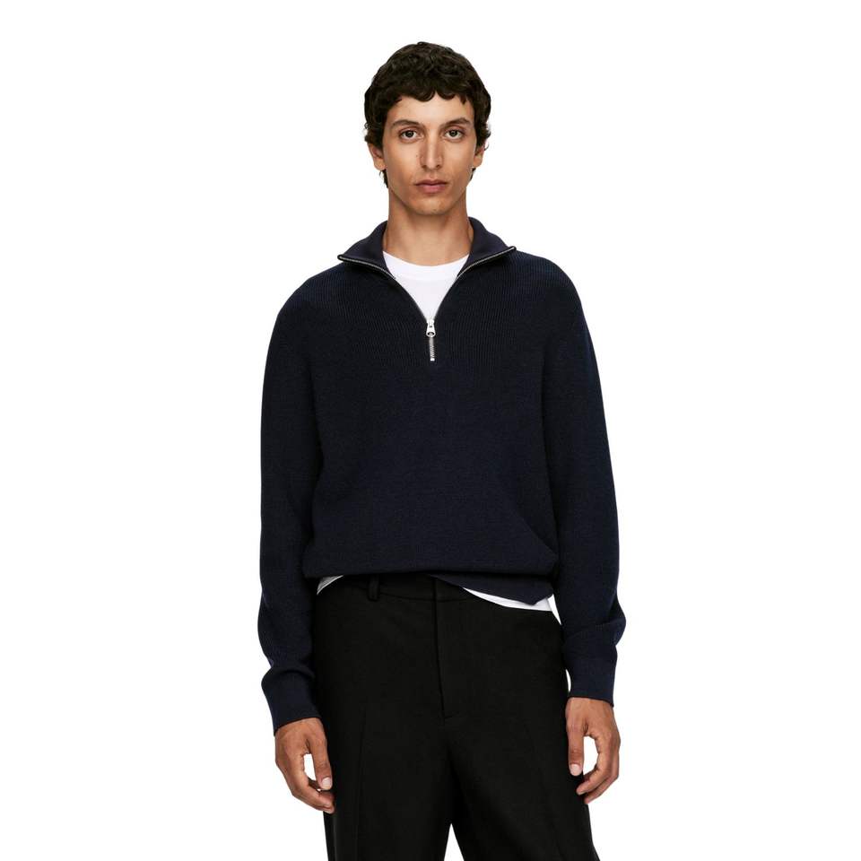 Custom Autumn Solid Half Zip Neck Knit Sweater Polyester Acrylic Cotton Front Logo For Sweater Pullover For Men With Custom Logo