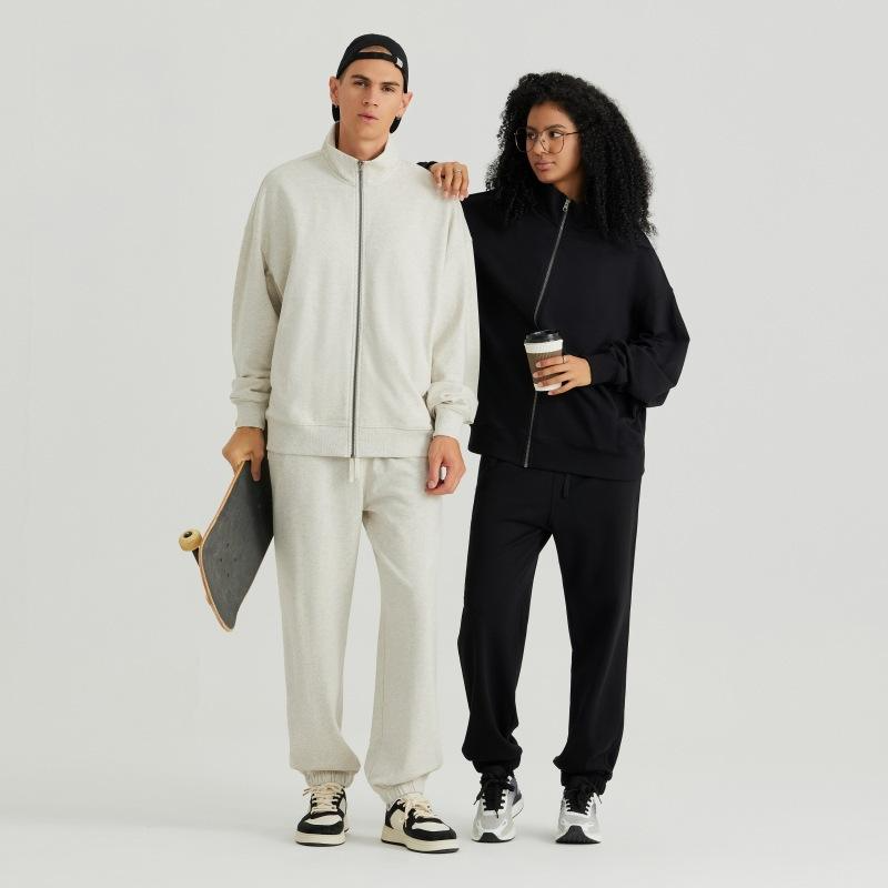Ensemble survêtement automne personnalisé, sweat à capuche oversize à fermeture éclair et jogging, molleton épais, streetwear unisexe, tenue décontractée, polyester/coton
