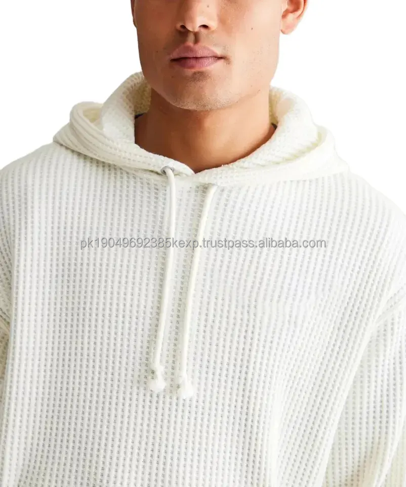 Sweat à capuche en tricot gaufré avec broderie 3D personnalisée pour l'automne, 300 g/m², léger pour homme